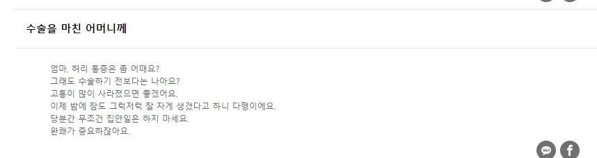 이러한 인사말들은 개인의 상황에 맞게 적절히 수정하거나 여러 문구를 조합해 사용할 수 있습니다. 예를 들어, 엄마, 허리 통증은 어떠세요? 수술 후에는 조금 나아졌나요? 앞으로는 집안일은 절대 하지 마시고, 건강 회복에만 집중하세요.와 같이 소중한 사람에게 따뜻한 마음을 전할 수 있습니다.