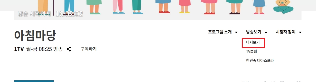 만약 지난 회차를 골라서 보고 싶다면, 프로그램 제목 오른쪽에 있는 '방송보기' 메뉴를 찾아야 해요. 이 메뉴를 클릭하면 '다시보기', '예고' 같은 하위 메뉴들이 쭉 펼쳐지는데, 우리는 '다시보기'를 선택하면 된답니다.