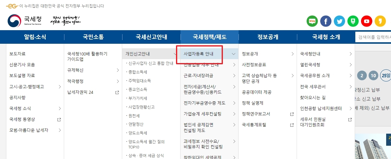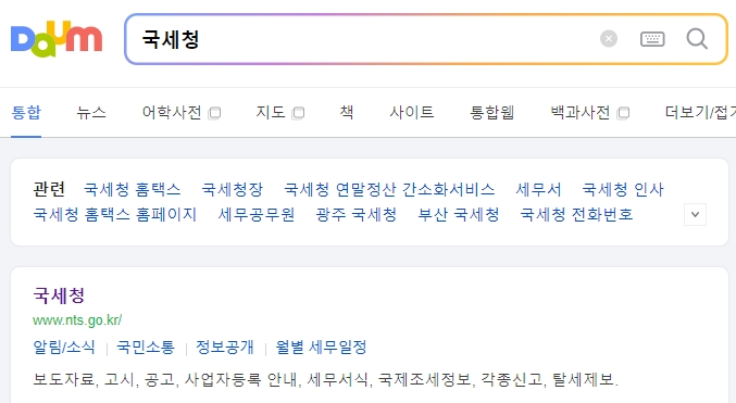 국세청 홈페이지에 접속합니다. 국세청 홈페이지는 관련 정보들이 대부분 있다고 보면 되고 검색을 통해서 쉽게 정보를 찾을 수 있습니다.