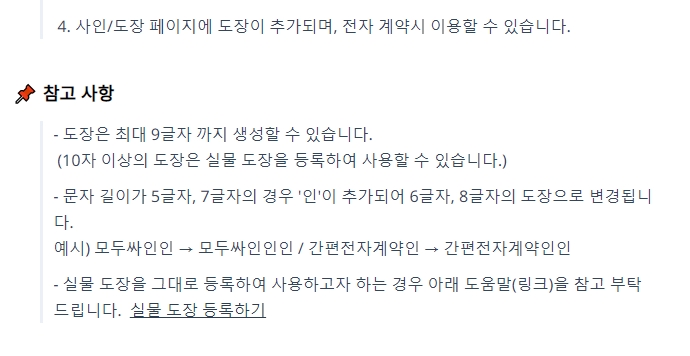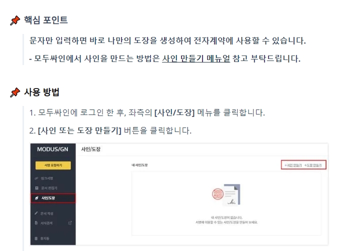 이 사이트가 원래 전자 계약용이라 '싸인'이랑 '도장'을 둘 다 만들 수 있게 되어 있어요. 우리는 싸인이 필요하니까 '싸인' 부분을 보면 되는데요.