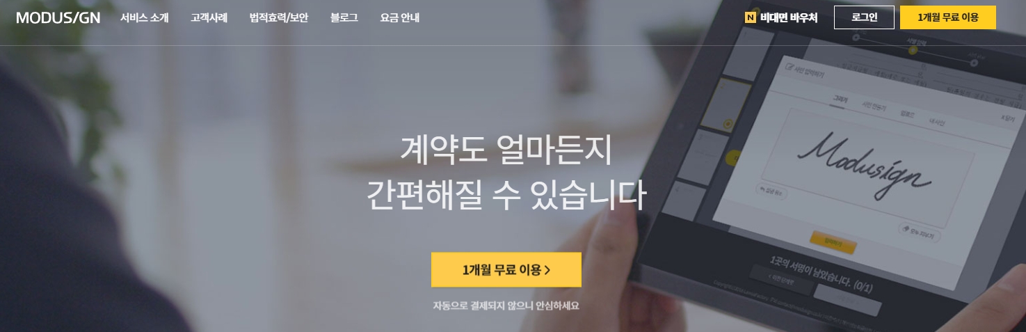 포털에서 '모두싸인'을 검색하면 바로 입장이 가능해요. 1개월 무료 이용도 제공하고, 자동 결제도 없다고 하니 부담 없이 테스트해보기 좋죠. 이런 건 또 놓치면 안 되거든요.