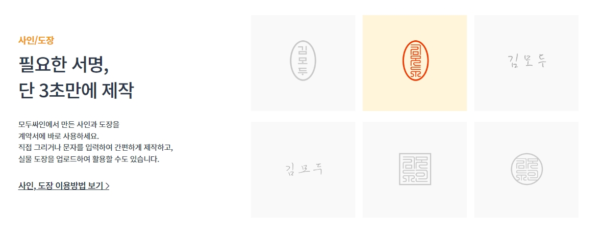 오늘 소개해드릴 곳은 '모두싸인'이라는 곳이에요. 따로 프로그램을 설치할 필요 없이 웹사이트에서 바로 이름 싸인 만들기가 가능해서 편하더라고요. 저도 급하게 전자 계약서에 서명할 일이 생겨서 써봤는데, 생각보다 퀄리티가 괜찮았어요.