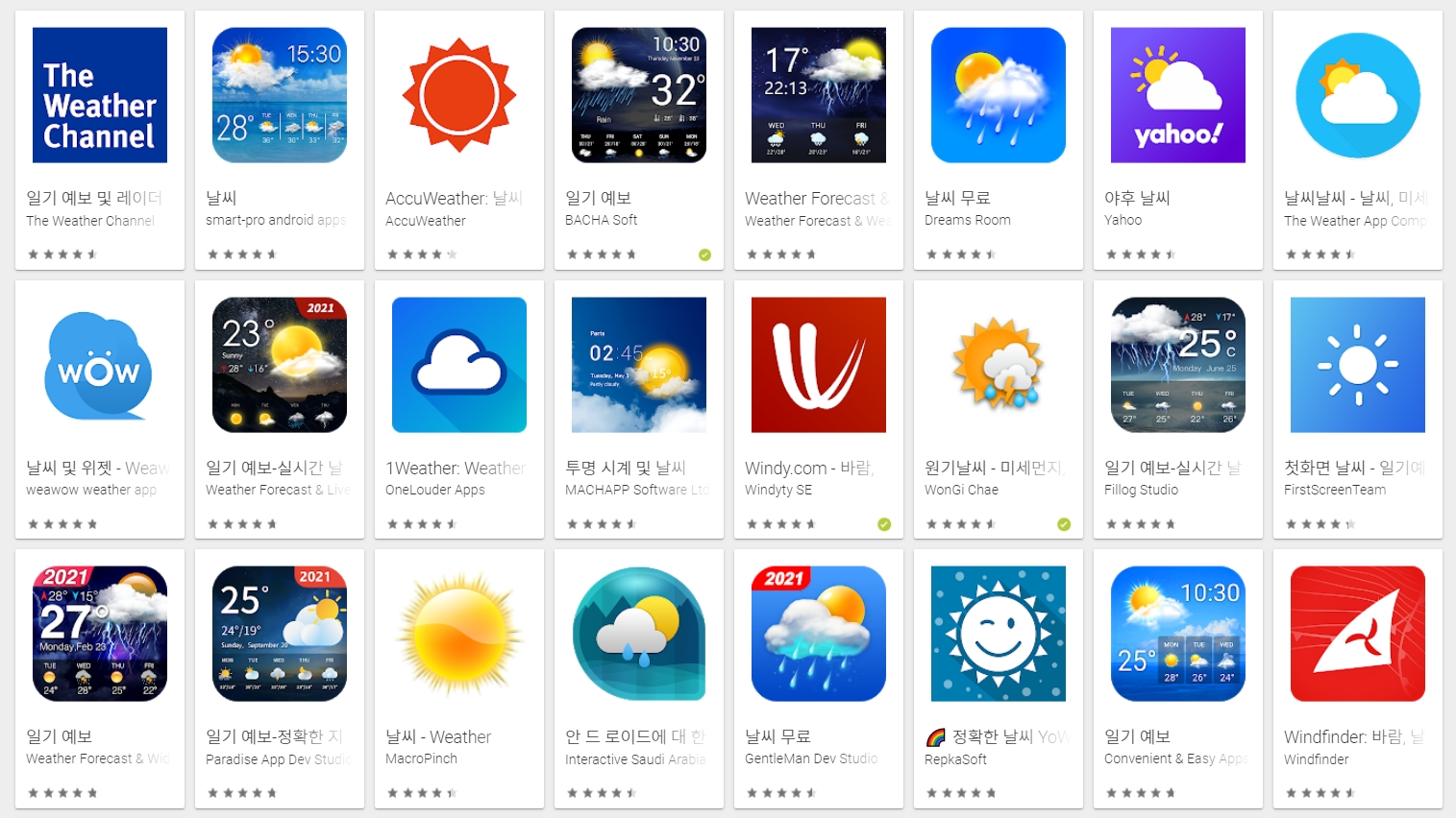 플레이스토어에 '날씨'라고 검색하면 정말 수많은 앱이 나오잖아요. 그중에서 전 세계적으로 유명하고 특히 아웃도어 활동하시는 분들이 필수로 까는 앱이 바로 '윈디'예요. 목록에서 빨간색 로고나 바람 모양 아이콘을 찾으시면 됩니다.