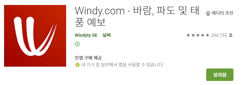 - 윈디(Windy): 낚시, 캠핑 등 바람과 태풍 정보가 중요한 아웃도어파