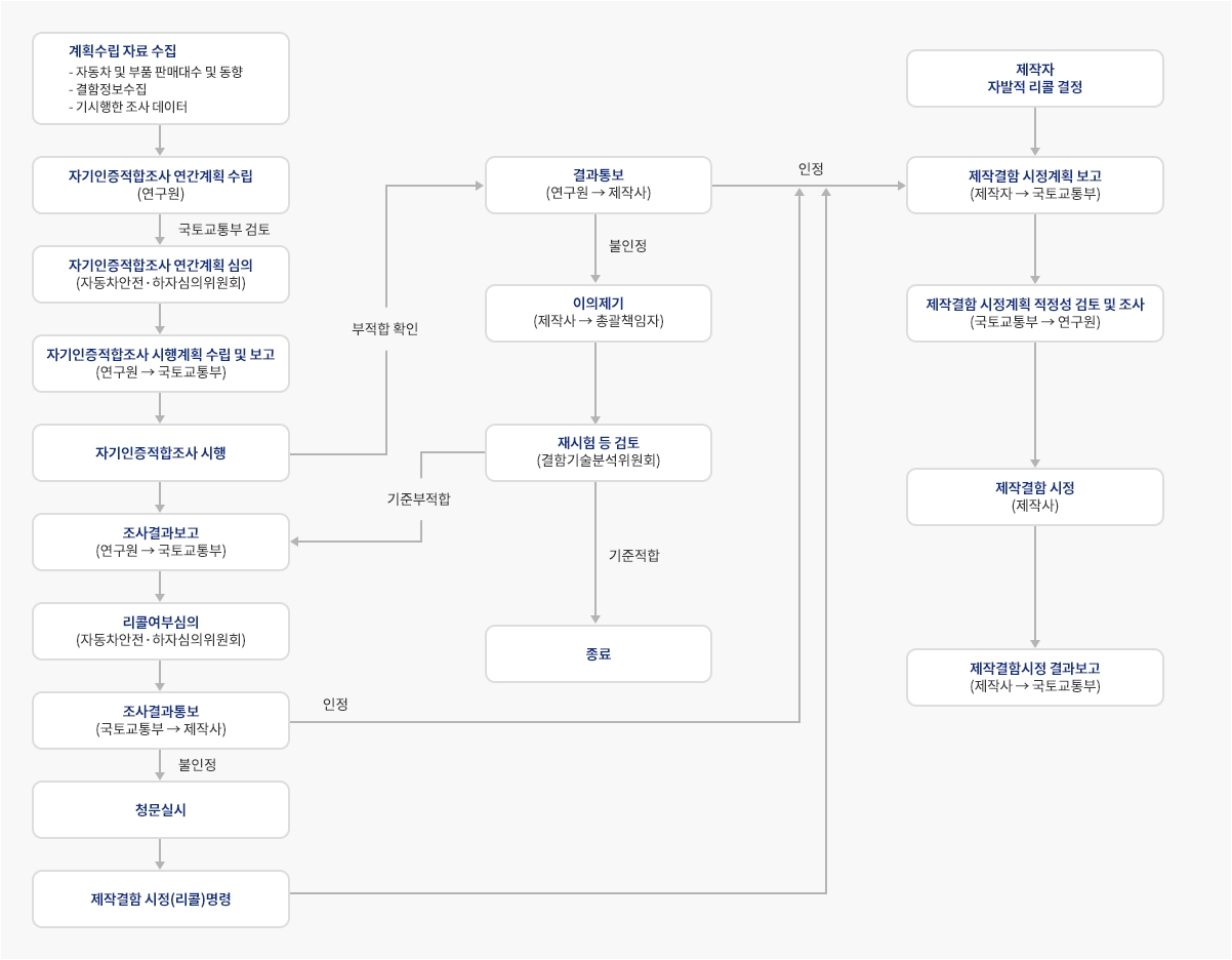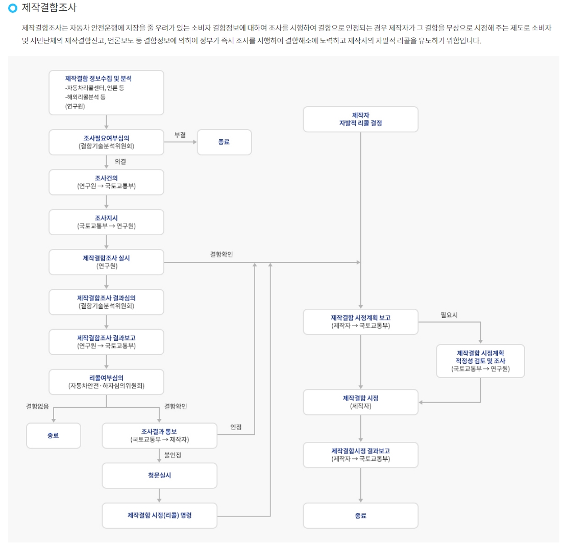 - 결함 정보가 수집되면 국토부에서 조사를 지시합니다.