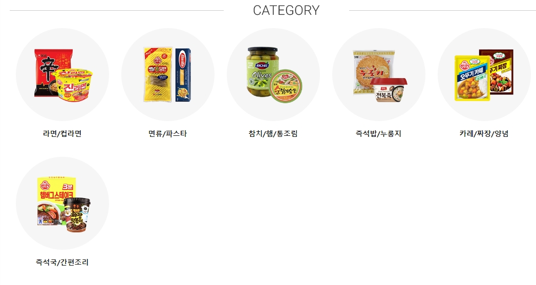 자취생들의 필수 코너인 라면이나 간편식도 이렇게 따로 분류되어 있어요. 마트 가서 무겁게 박스로 사 오지 않아도 되고, 집 앞까지 배달해주니까 부피 큰 식량 쟁여두기엔 이만한 곳이 없죠.