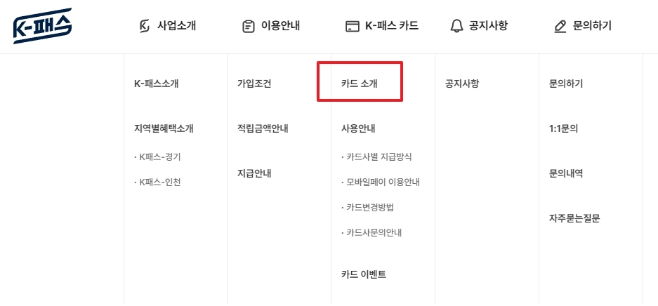 홈페이지 상단 메뉴를 보시면 K-패스 카드라는 메뉴가 보이실 거예요. 이걸 클릭하면 하위 메뉴가 나오는데, 여기서 '카드 소개'를 눌러주시면 됩니다. 처음 들어가시면 생각보다 종류가 너무 많아서 당황하실 수도 있는데요, 차근차근 나에게 맞는 걸 고르는 게 중요해요.