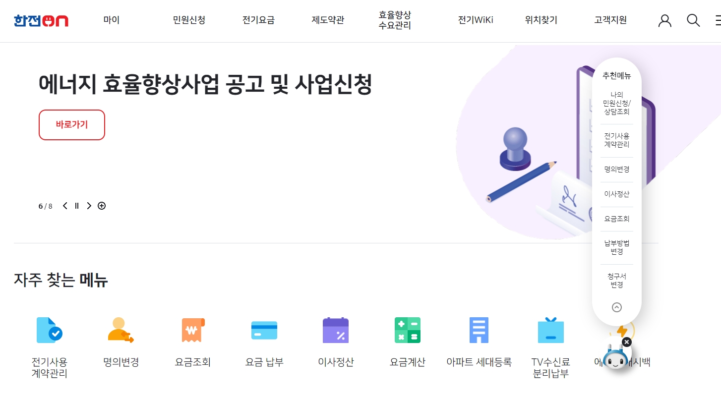 한전온 홈페이지에서는 명의 변경, 요금 조회, 요금 납부 등의 서비스를 제공하고 있습니다. 이러한 서비스를 이용하기 위해서는 로그인이 필요합니다.