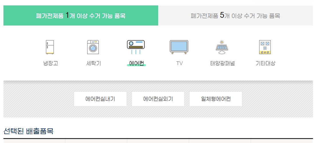 - 냉장고/세탁기/에어컨/TV: 대표적인 단일 수거 가능 품목입니다. 단, 에어컨은 실외기가 분리되어 있어야 하고, TV도 벽걸이라면 떼어 놓으셔야 해요.