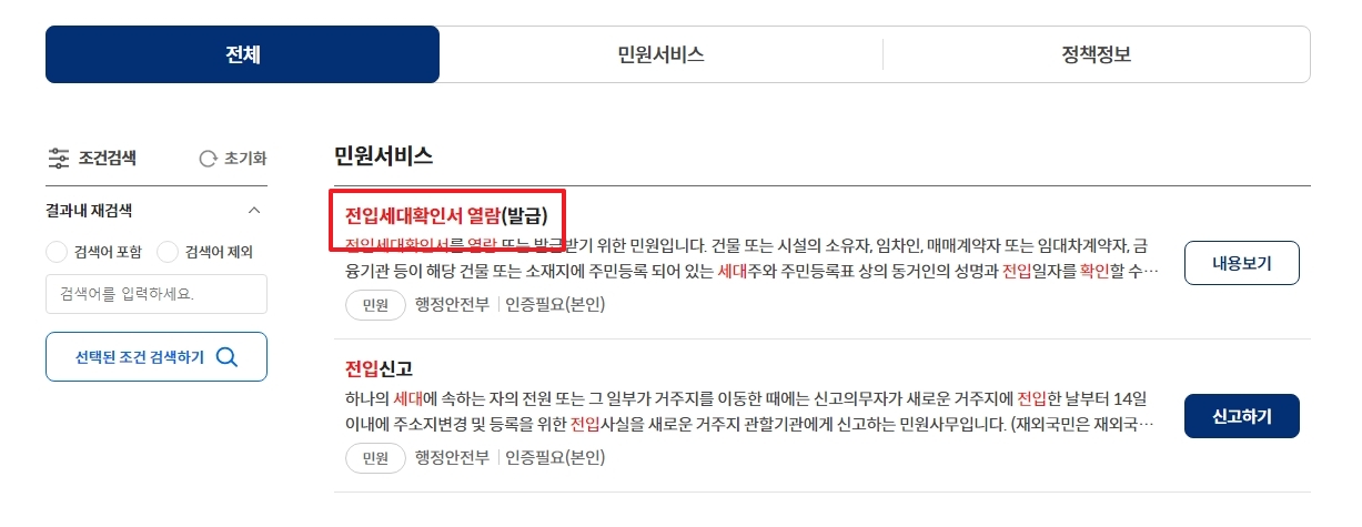 실제로 검색창에 키워드를 넣고 돌려보면 관련 민원 서비스가 뜨기는 합니다. 여기서 많은 분이 "아, 인터넷으로 되는구나!" 하고 희망을 가지시더라고요. 저도 그랬으니까요. 목록에 떡하니 서비스 이름이 나오니 당연히 출력 버튼도 어딘가에 있을 거라고 믿게 됩니다.