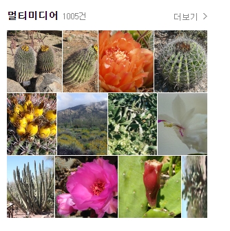 또한, 멀티미디어 라고 적힌 우측을 보면 선인장에 관한 다양한 사진을 볼 수 있습니다. 이 사진들을 통해 원하는 선인장 종류의 외관을 확인하고, 그에 맞는 정보를 찾아보는 것도 좋은 방법입니다.