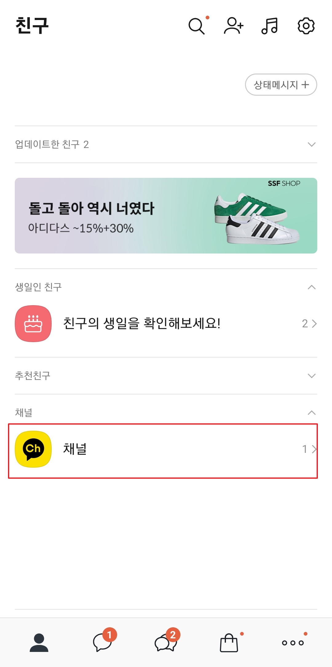 우선 친구 목록에서 '채널' 그룹을 찾아 들어가신 뒤, 정리를 원하는 채널 이름을 찾아주세요. 저는 방금 추가했던 곳을 다시 정리해 보겠습니다.