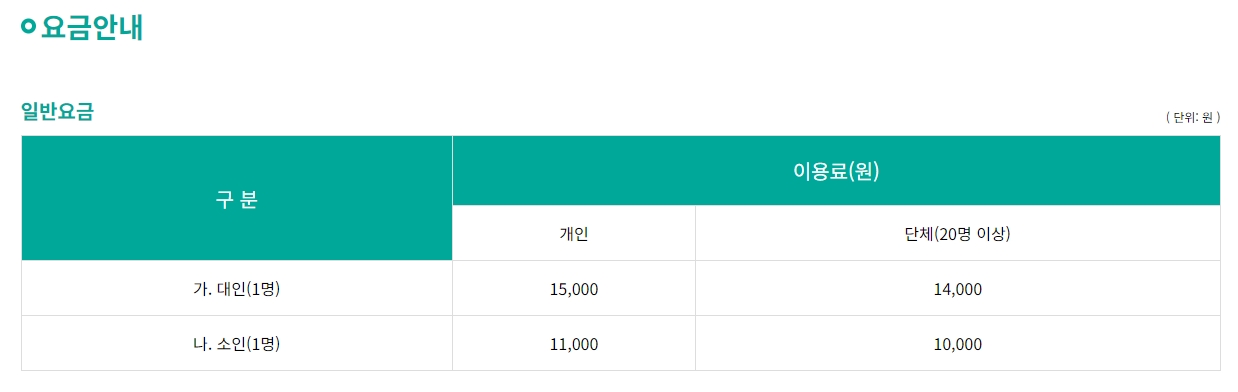 - 대인 (중학생 이상): 15,000원