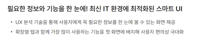 V3 Lite는 최신 IT 환경에 최적화된 스마트 UI를 제공합니다. UX 분석 기술을 통해 필요한 정보와 기능을 한 눈에 볼 수 있으며, 사용자의 편의성을 극대화하기 위해 확장형 탭과 함께 가장 많이 사용되는 기능을 첫 화면에 배치합니다.