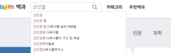 홈페이지의 검색 창에 선인장이라는 키워드를 입력하십시오. 이를 통해 선인장에 관한 기본 정보 및 관련 내용들을 볼 수 있습니다.