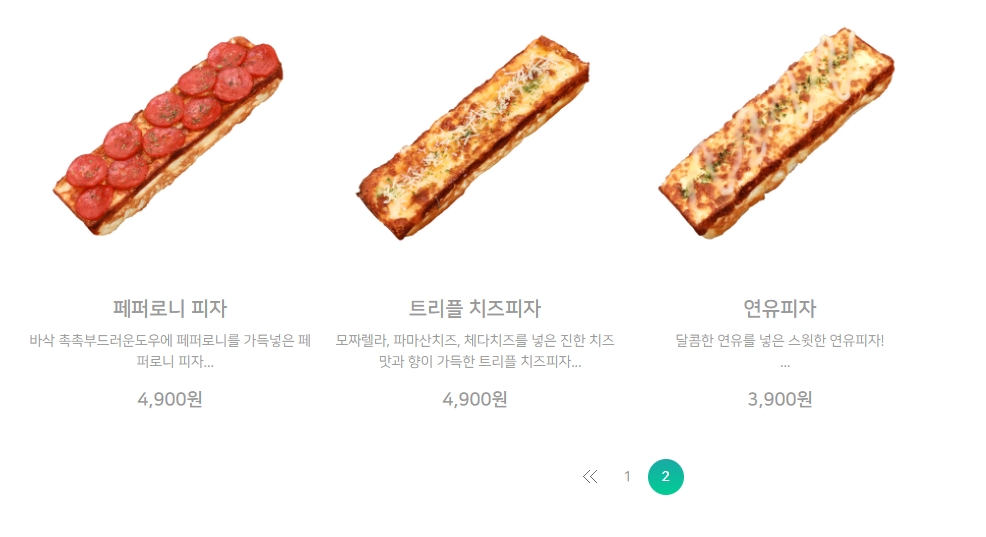 클래식 카테고리의 2페이지에서는 페퍼로니, 치즈피자, 콤비네이션, 포테이토와 같은 기본적인 피자들을 확인할 수 있습니다. 이러한 클래식 메뉴들은 피자의 기본 맛을 즐기기에 좋습니다.
