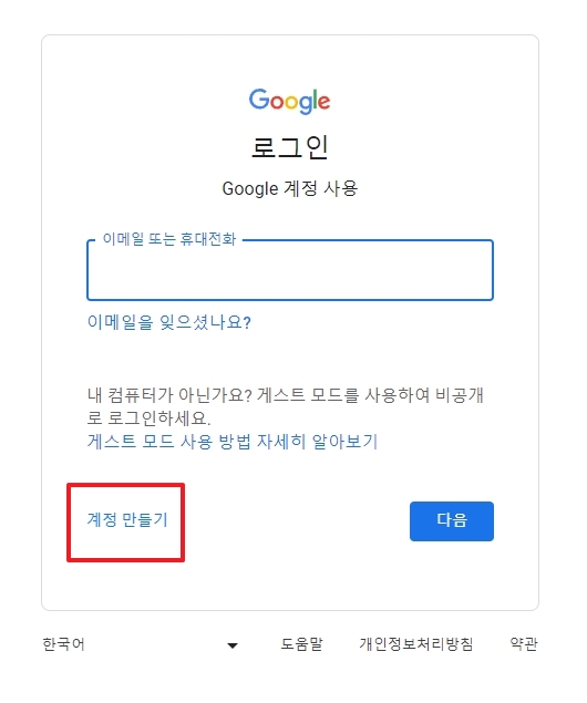 구글 계정 만들기 순서