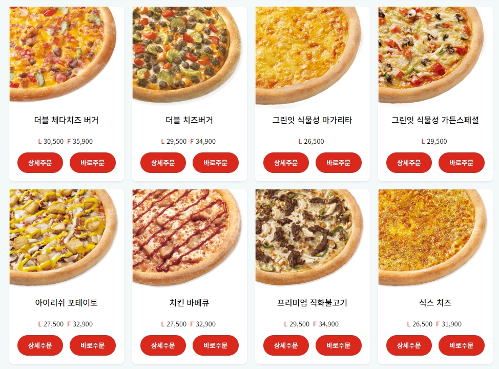 홈페이지에 접속한 후 상단 메뉴에서 메뉴를 클릭합니다. 이를 통해 다양한 피자 메뉴와 가격을 확인할 수 있습니다.