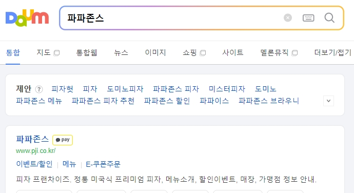 파파존스 홈페이지에 들어갑니다. 이곳에서는 정통 미국식 프리미엄 피자를 제공하며, 메뉴 소개, 할인 이벤트, 매장 위치, 가맹점 정보 등을 안내하고 있습니다.