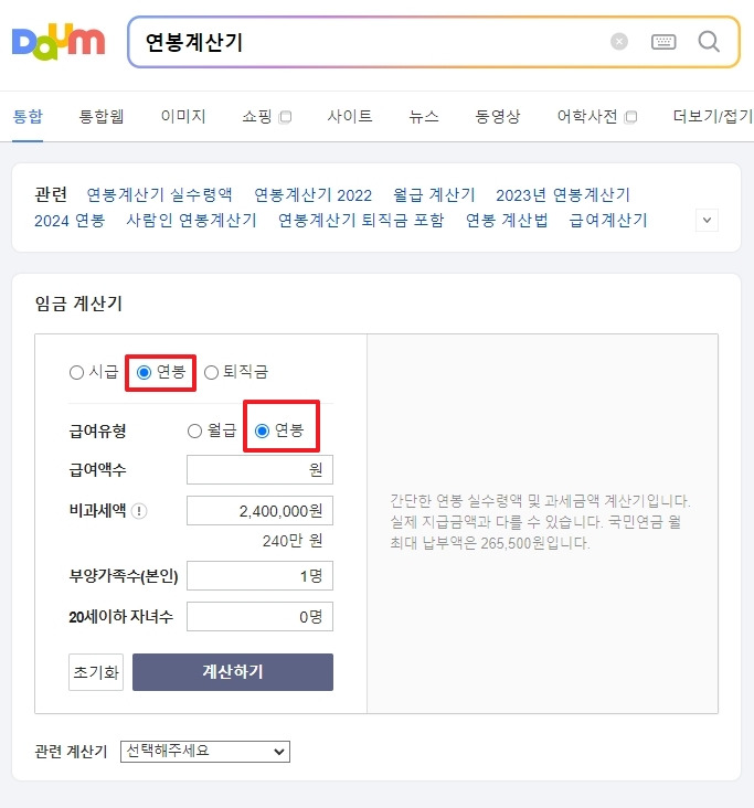 다음(Daum) 검색 엔진에서 연봉계산기를 검색하면, 다양한 임금 계산기 중에서 연봉 관련 계산기를 찾을 수 있습니다. 검색 결과에서 연봉 계산기를 선택하고, 급여 유형에서 연봉을 선택합니다. 이 단계는 연봉에 대한 정확한 계산을 위한 시작점입니다.