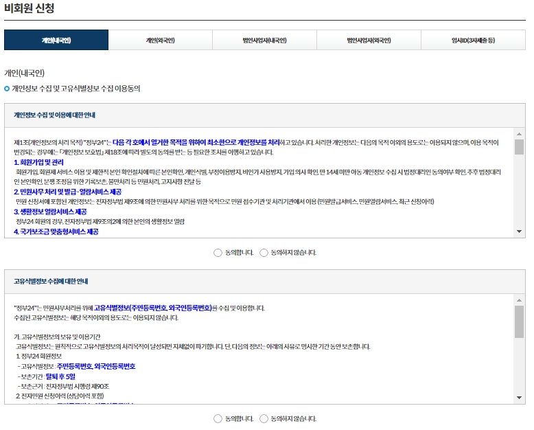 정부24 홈페이지에 들어갑니다. 여기서는 정부가 제공하는 다양한 서비스, 민원 처리, 정부 혜택, 정책 정보 등을 통합적으로 제공하는 대한민국 정부의 대표 포털입니다. 사용자는 이 포털을 통해 다양한 정부 서비스를 쉽게 이용할 수 있습니다.