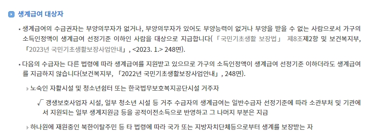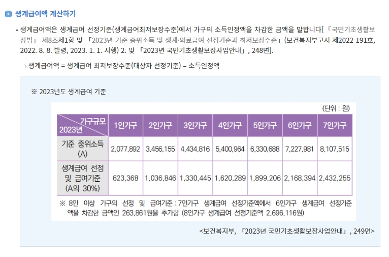 2024 기초생활수급자 생계급여