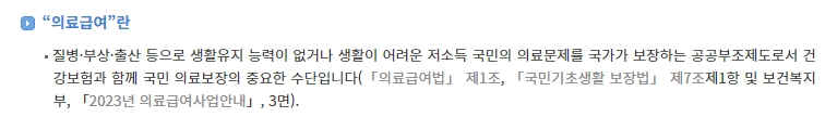 의료급여는 질병, 부상, 출산 등으로 인해 생활유지 능력이 없거나 생활이 어려운 저소득 국민의 의료 문제를 국가가 보장하는 공공부조제도입니다. 이는 건강보험과 함께 국민 의료보장의 중요한 수단입니다.