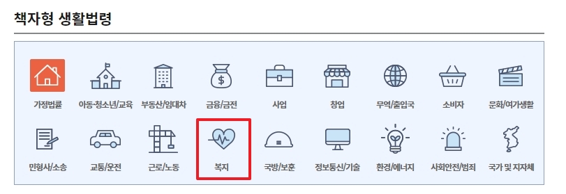 홈페이지 상단 메뉴에서 책자형 생활법령을 선택합니다. 이를 통해 사용자는 다양한 생활 법령 관련 정보를 책자 형태로 쉽게 탐색할 수 있습니다.