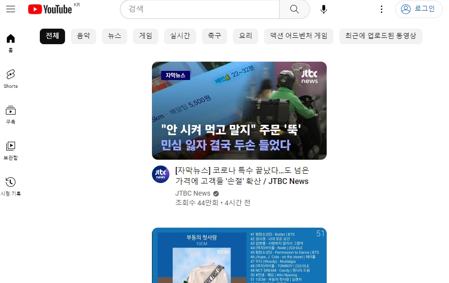 유튜브 어플리케이션 또는 홈페이지에 접속합니다. 다양한 콘텐츠를 제공하는 유튜브는 사용자가 원하는 거의 모든 동영상을 찾아볼 수 있는 플랫폼입니다.