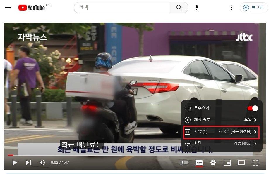 메뉴 내에서 사용 안함, 한국어 생성, 자동 번역 등 다양한 옵션 중에서 필요에 맞게 선택할 수 있습니다. 뉴스 콘텐츠에서는 아나운서의 발음이 정확하기에 자막 매우 정확한 자막을 제공하지만, 일반적인 영상에서는 자동 생성된 자막이 정확하지 않을 수도 있습니다.
