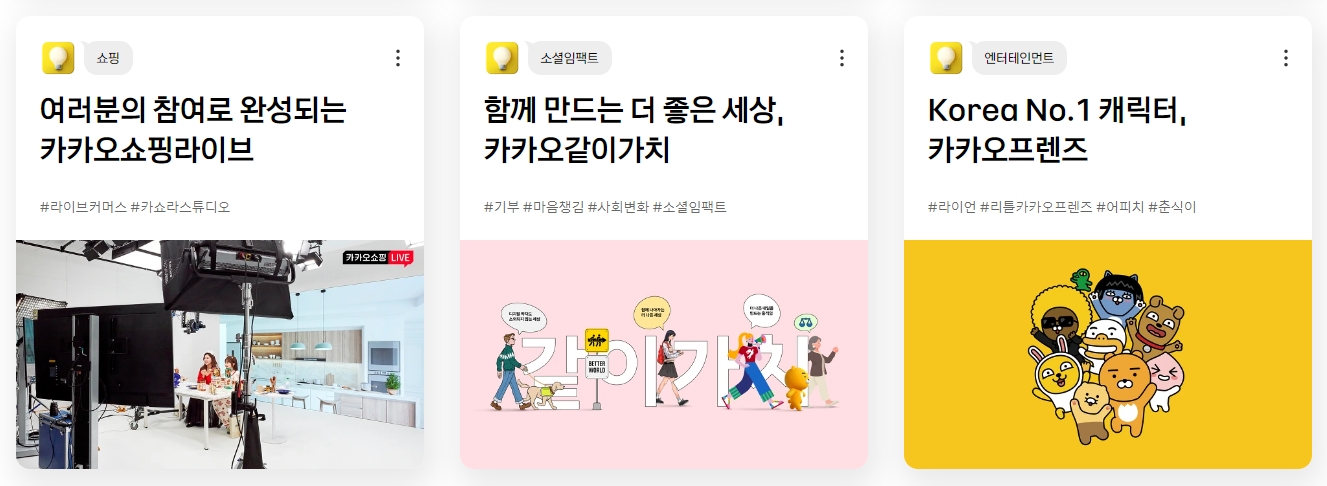 카카오는 일하는 방식의 변화를 추구합니다. 카카오비즈니스와 같은 플랫폼을 통해 사용자는 보다 쉽고 효율적인 업무 수행이 가능하며, 이를 통해 함께 일하는 즐거움을 발견할 수 있습니다. 이와 함께, 헤이카카오를 이용하면 말 한마디로 일상이 편리해지는 경험을 할 수 있으며, 카카오 이모티콘을 통해 새로운 소통의 언어를 만날 수 있습니다.