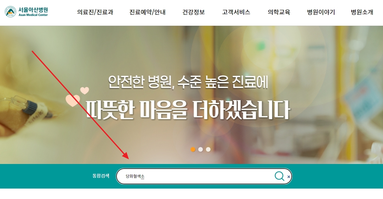 홈페이지의 검색창을 통해 당화혈색소를 검색하면, 관련된 정보를 제공하는 페이지로 이동할 수 있습니다. 이 페이지에서는 당화혈색소 검사에 대한 자세한 설명과 함께, 당뇨병 진단 및 관리에 있어서 이 검사가 어떤 역할을 하는지에 대한 정보를 제공합니다.