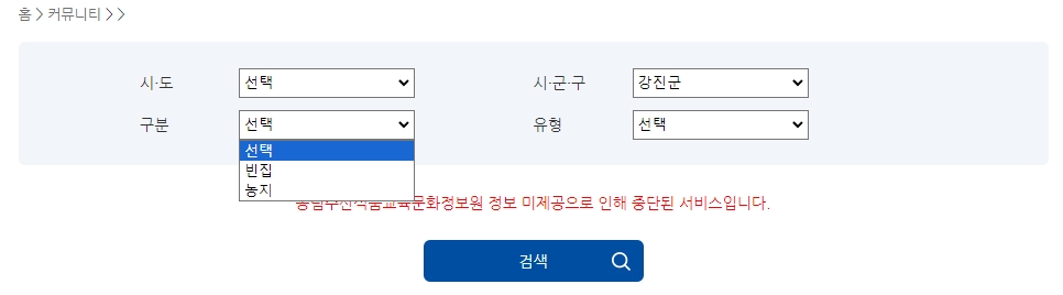 하지만 현재 이 서비스는 농림수산식품교육원의 정보 미제공으로 인해 중단된 상태라고 합니다. 이는 해당 서비스를 이용하려는 사용자들에게는 아쉬운 소식이며, 이와 같은 중단은 농어촌 정보 포털을 통해 필요한 정보를 얻으려는 사람들의 정보 접근성에 영향을 줄 수 있습니다. 서비스가 재개되기를 기다리는 사용자들은 대안적인 정보 출처를 찾거나 해당 기관의 공지사항을 주기적으로 확인하여 최신 정보를 얻는 것이 중요합니다.