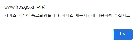 서비스 이용 가능 시간이 종료되었다는 메시지가 표시될 경우, 서비스 제공 시간 안내를 확인하여 그 시간에 맞춰 이용해야 합니다.