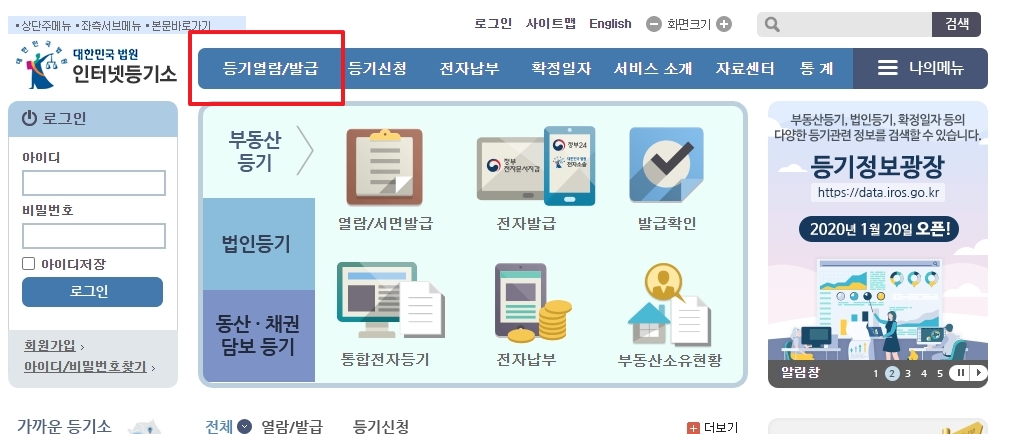 부동산 등기부등본 인터넷 발급 및 열람