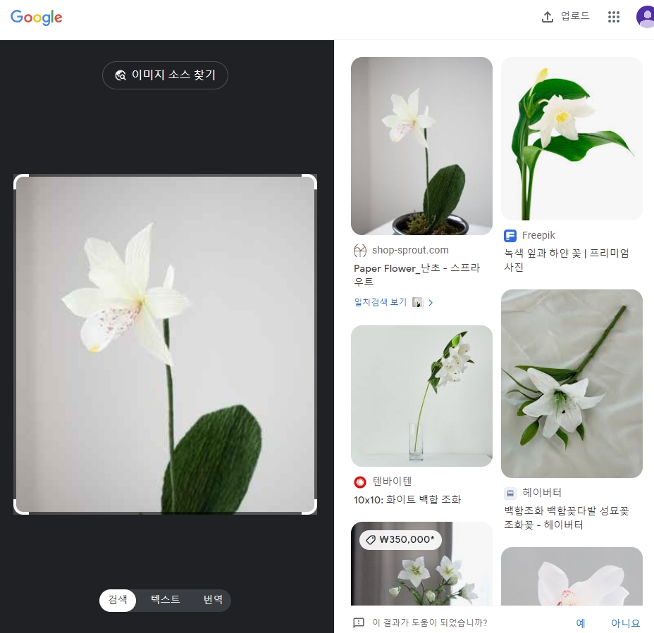 이미지 검색을 위해 사진을 해당 위치로 드래그, upload a file 클릭하여 파일을 직접 선택하여 업로드, 또는 해당 사진의 링크를 입력하는 등의 방법으로 검색을 진행할 수 있습니다. 이는 사용자가 소유한 화초 사진이나 인터넷에서 찾은 사진으로 화초의 종류를 알아볼 수 있는 효과적인 방법입니다.