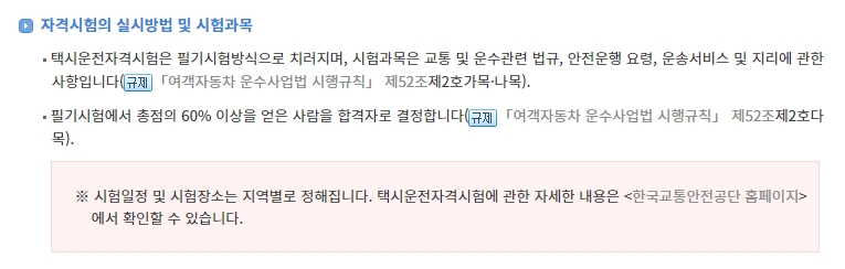 택시운전자격시험은 주로 필기시험 형태로 치러지며, 교통 및 운수관련 법규, 안전운행 요령, 운송서비스, 지리 등을 포함한 여러 과목을 평가합니다. 합격 기준은 총점의 60% 이상을 얻는 것입니다. 이 과정을 통해 개인택시 운전자가 되기 위한 전문 지식과 기술을 검증받을 수 있습니다. 시험일정과 시험장소는 지역별로 다양하게 정해지며, 자세한 내용은 한국교통안전공단 홈페이지에서 확인할 수 있습니다.