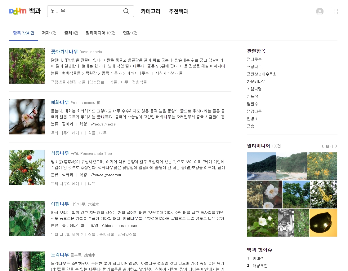오늘은 꽃나무에 대해 알아보기 위해 다음백과 홈페이지를 방문했습니다. 이곳은 다양한 주제에 대한 정보를 제공하는 곳으로, 특히 이슈, 인물, 사건 등에 관한 자료가 풍부해 언제나 유용하게 사용할 수 있습니다. 방대한 지식의 바다에서 우리가 찾고자 하는 꽃나무에 대한 정보도 쉽게 접할 수 있었습니다.