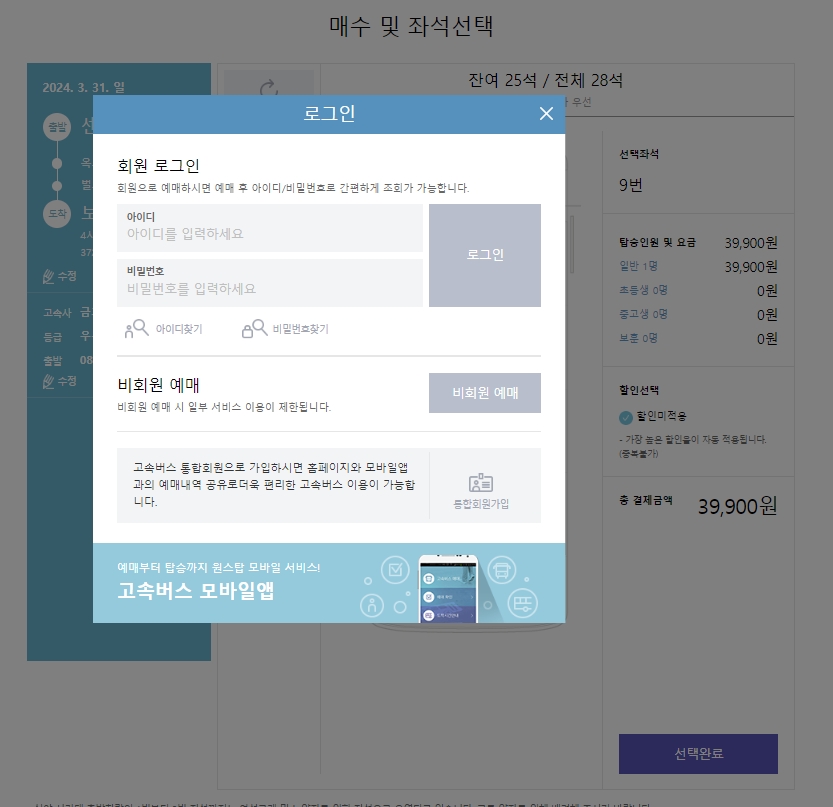 홈페이지에 들어가 출발지를 선택하는 과정은 꽤 직관적입니다. 출도착지 선택창에서 서울을 선택하고, 그 중에서도 센트럴시티(서울)를 클릭하는 순간, 서울에서 출발하는 다양한 노선을 한눈에 볼 수 있었습니다. 이 과정이 생각보다 간단해서 누구나 쉽게 이용할 수 있을 것 같습니다.