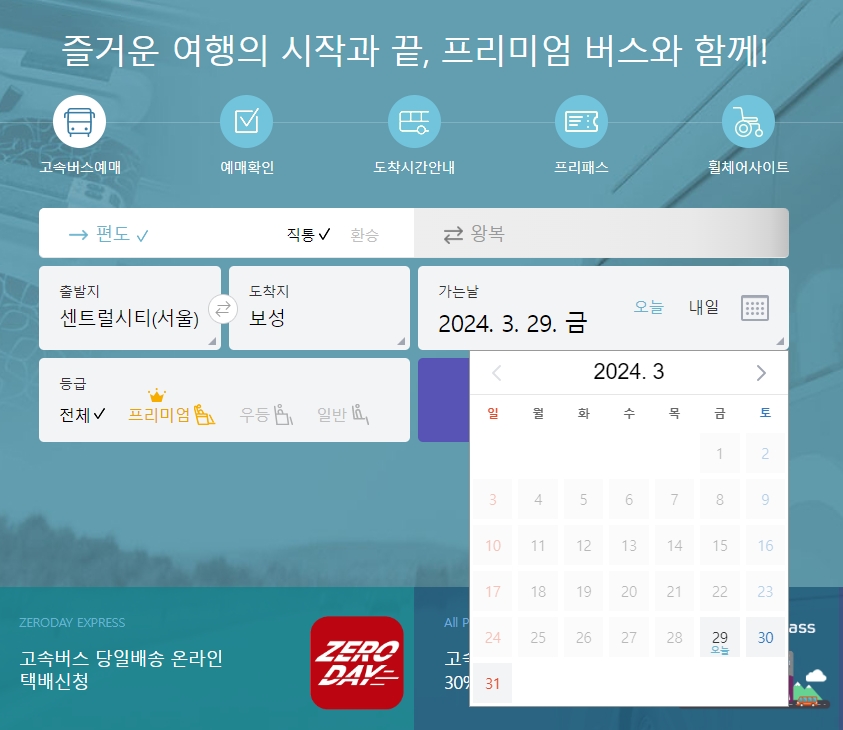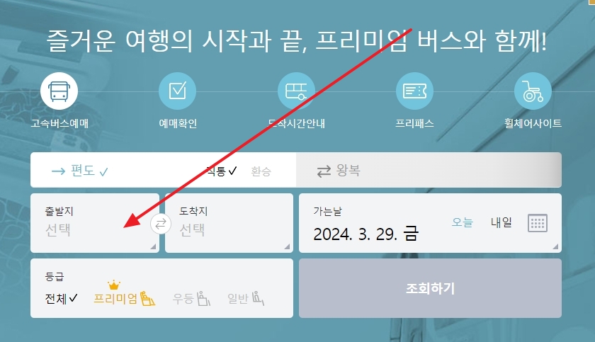 홈페이지에 들어가 출발지를 선택하는 과정은 꽤 직관적입니다. 출도착지 선택창에서 서울을 선택하고, 그 중에서도 센트럴시티(서울)를 클릭하는 순간, 서울에서 출발하는 다양한 노선을 한눈에 볼 수 있었습니다. 이 과정이 생각보다 간단해서 누구나 쉽게 이용할 수 있을 것 같습니다.