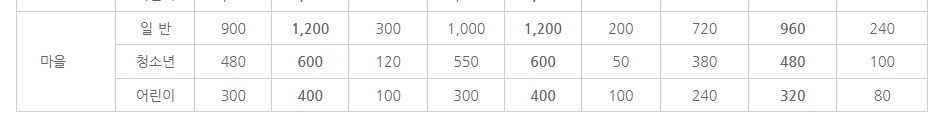 또 마을 버스 요금은 일반 성인 기준 900원에서 1,200원으로, 청소년은 480원에서 600원으로, 어린이는 300원에서 400원으로 조정되었습니다. 이 조정은 모든 연령대의 버스 이용자에게 영향을 미칩니다.