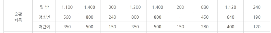 무임 적용 대상은 보호자 동반 만 6세 미만의 영·유아 3인까지이며, 보호자는 일반인 요금을 지불해야 합니다. 또한, 어린이 및 청소년은 교통카드를 구입하여 등록 후 사용해야 할인을 받을 수 있습니다. 어린이 할인은 만 6세 이상부터 만 13세 미만이나 초등학생에게, 청소년 할인은 만 13세 이상부터 만 18세 이하나 중·고등학교에 재학 중인 18세 초과 24세 이하인 청소년에게 적용됩니다.