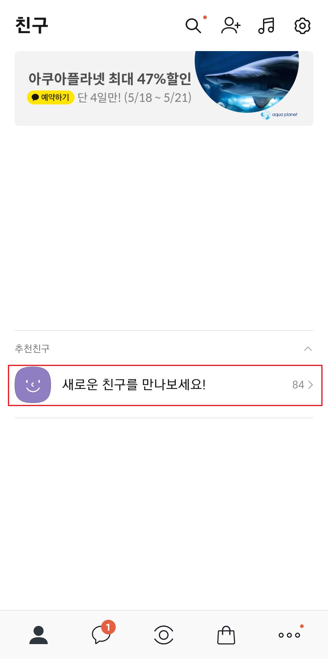 카카오톡 애플리케이션을 실행한 후 친구 탭에 들어가면 추천 친구 목록이 표시되는 것을 볼 수 있습니다; 이 목록은 어플리케이션 내에서 새로운 인맥을 발굴하고 확장할 수 있는 기능을 제공합니다.