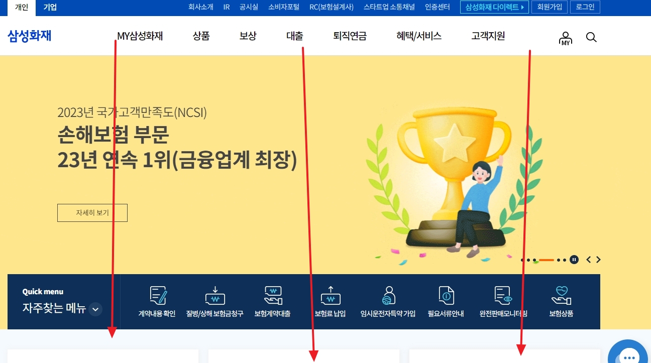 삼성화재 홈페이지에 방문하면 다양한 서비스를 한눈에 확인할 수 있습니다. 사용자는 상품 정보부터 보상 절차, 계약 조회, 증명서 발급, 납입 관련 사항, 혜택과 각종 필요 서류 등을 쉽게 찾아볼 수 있으며, 이를 통해 보험과 관련된 종합적인 관리를 할 수 있습니다.