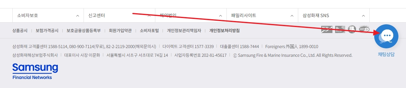 또한, 삼성화재 홈페이지에서는 채팅상담 서비스를 제공하고 있습니다. 이 서비스를 이용하려면 로그인이 필요하며, 채팅상담은 24시간 운영되지 않으니 운영 시간을 확인하시고 이용하시는 것이 좋습니다.