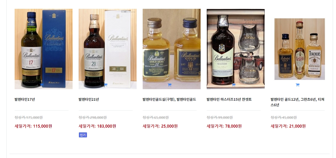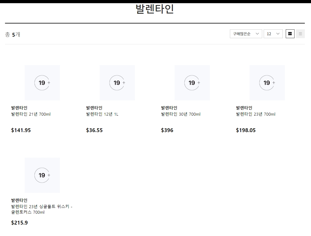 저는 한 주류 판매 사이트에 접속하여 발렌타인이라고만 검색했습니다. 30년산이라는 구체적인 연수를 명시하지 않고 검색하는 이유는, 때로는 검색 기능이 연수를 정확히 인식하지 못할 수 있기 때문입니다.