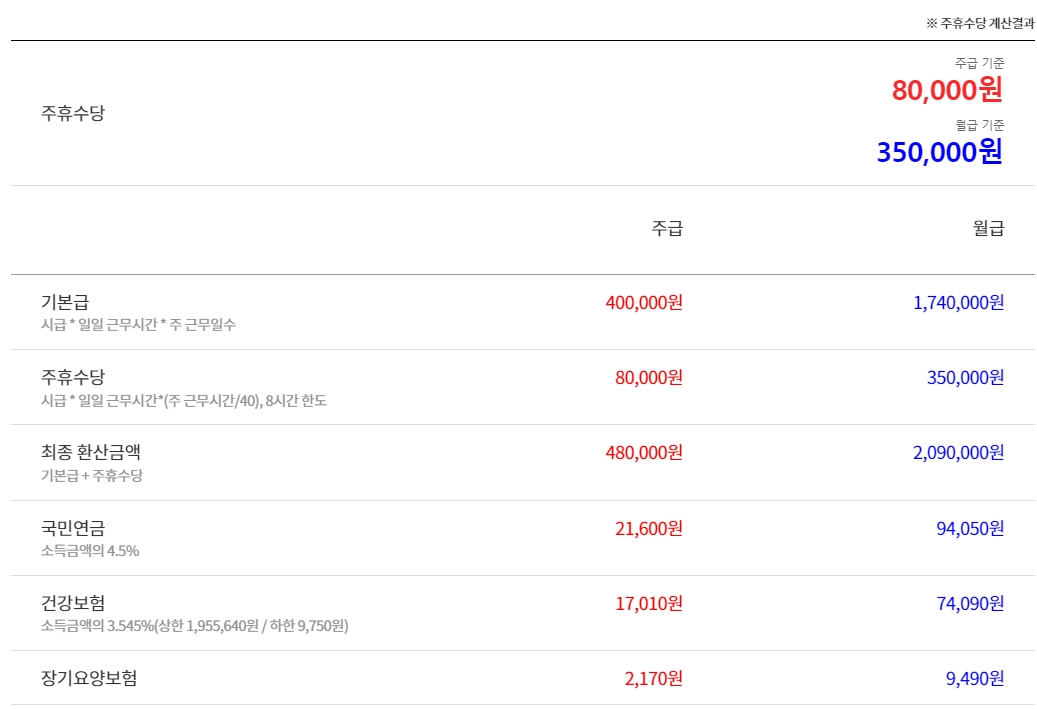 모든 정보를 입력하고 계산 버튼을 클릭하면 주휴 수당이 주급 기준과 월급 기준으로 얼마인지를 바로 확인할 수 있습니다. 이를 통해 근로자는 자신이 받아야 할 정당한 수당을, 고용주는 지급해야 할 수당을 알 수 있습니다.