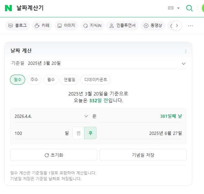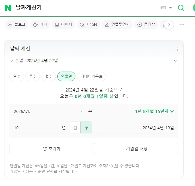 네이버 날짜 계산기