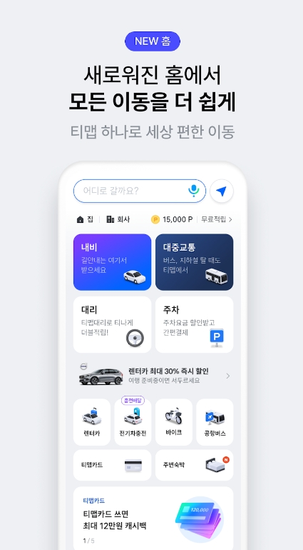 티맵은 기본적으로 자동차 내비게이션을 제공하는 앱입니다. 최근에는 단순한 내비게이션 기능을 넘어서 교통 정보 전체를 아우르려는 시도를 하고 있지만, 대부분의 사용자는 여전히 주로 내비게이션 기능을 이용할 것으로 예상됩니다.