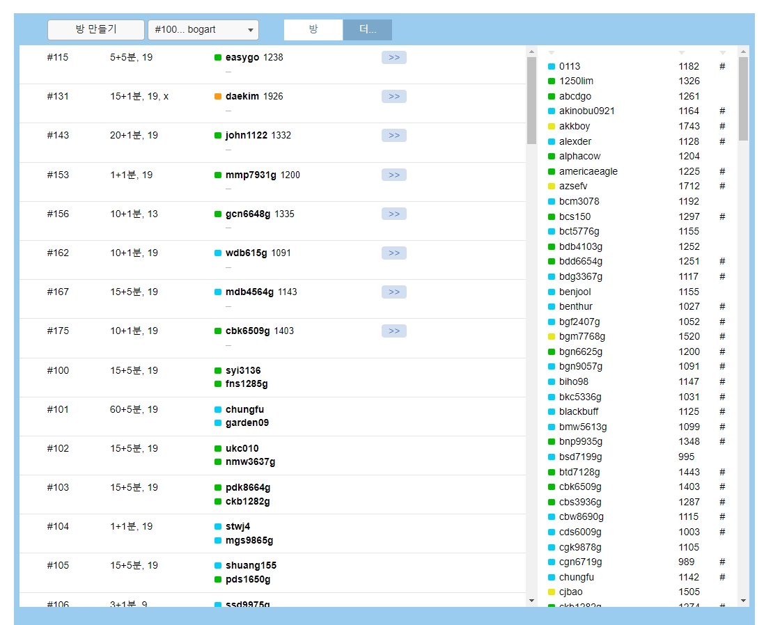 게임을 시작하기 위해 방을 만들거나 기존에 만들어진 방에 참여할 수 있으며, 대기실에서 다른 유저들과의 경기를 기다릴 수 있습니다.